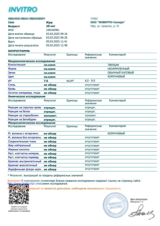 Но самое неприятное — если через анализ обнаружат патологию, а ты об этом не знаешь. Это может означать, что болезнь развивается, а ты всё ходишь и не знаешь, почему постоянно «тяжесть» в животе или почему на работе в центре Москвы начинают косо смотреть из-за частых больничных. В учебе тоже могут быть проблемы — особенно если нужна справка для спорткружка или бассейна на ВДНХ.